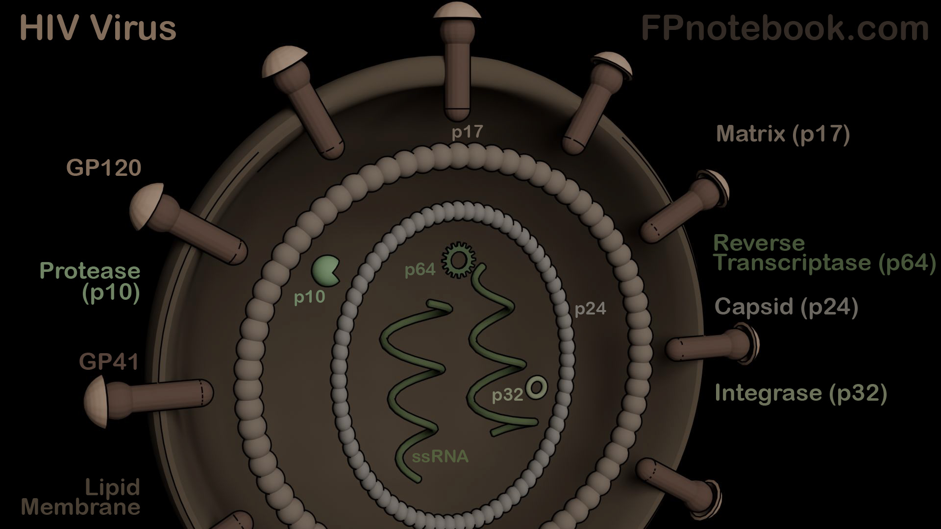 - Membrane contains embedded Glycoproteins (gp120 is external, gp41 is transmembrane)